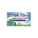 Zirtek is an antihistamine tablet containing Cetirizine. The tablet aids the relief of nasal and ocular symptoms of seasonal allergic rhinitis, runny nose, itchy nose eyes, blocked nose and sneezing.